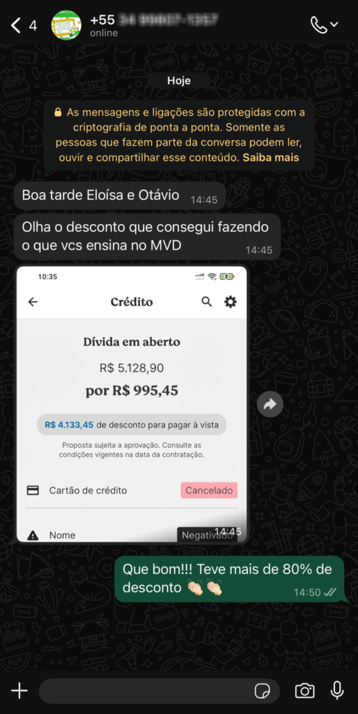 Muitos alunos conseguem recuperar mais dinheiro do que o valor do método, às vezes logo nas primeiras negociações.