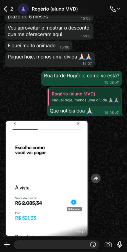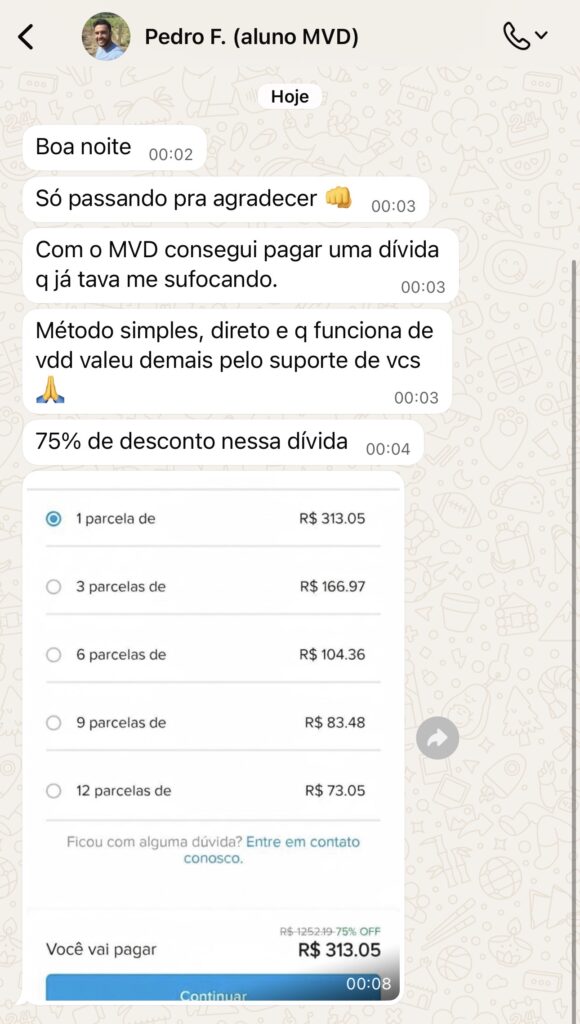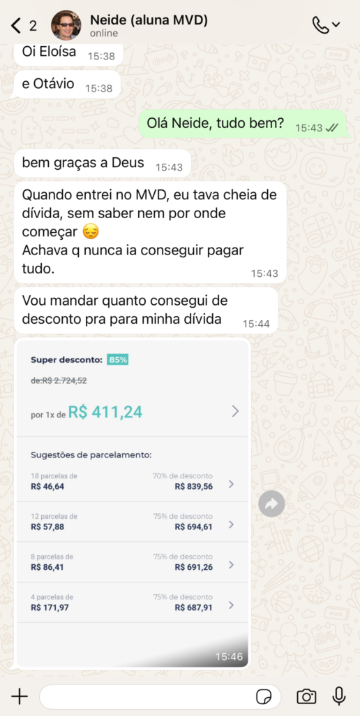 Muitas pessoas que entram no MVD estão exatamente nessa situação pagando juros todos os meses que são maiores do que a parcela do curso, de R$ 41.