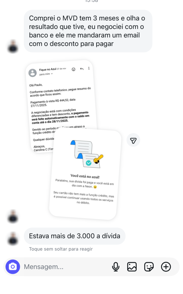 O MVD não é um gasto extra, é um passo para parar de perder dinheiro com juros. Aqui você aprende a negociar dívidas com descontos, organizar tudo e pagar no momento certo.