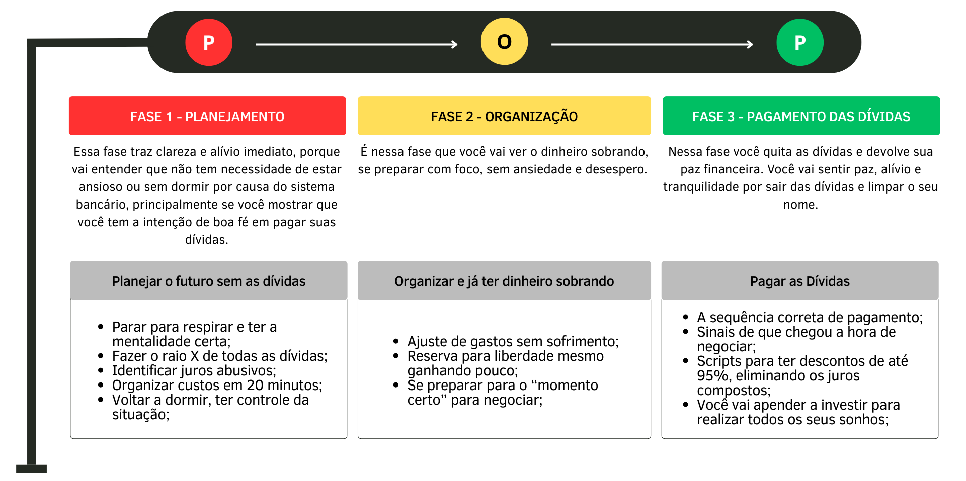 A estratégia POP vai te guiar de forma clara e simples de aplicar, para que você quite as dívidas de forma justa, evitar juros abusivos, ter dinheiro sobrando e viver em paz.